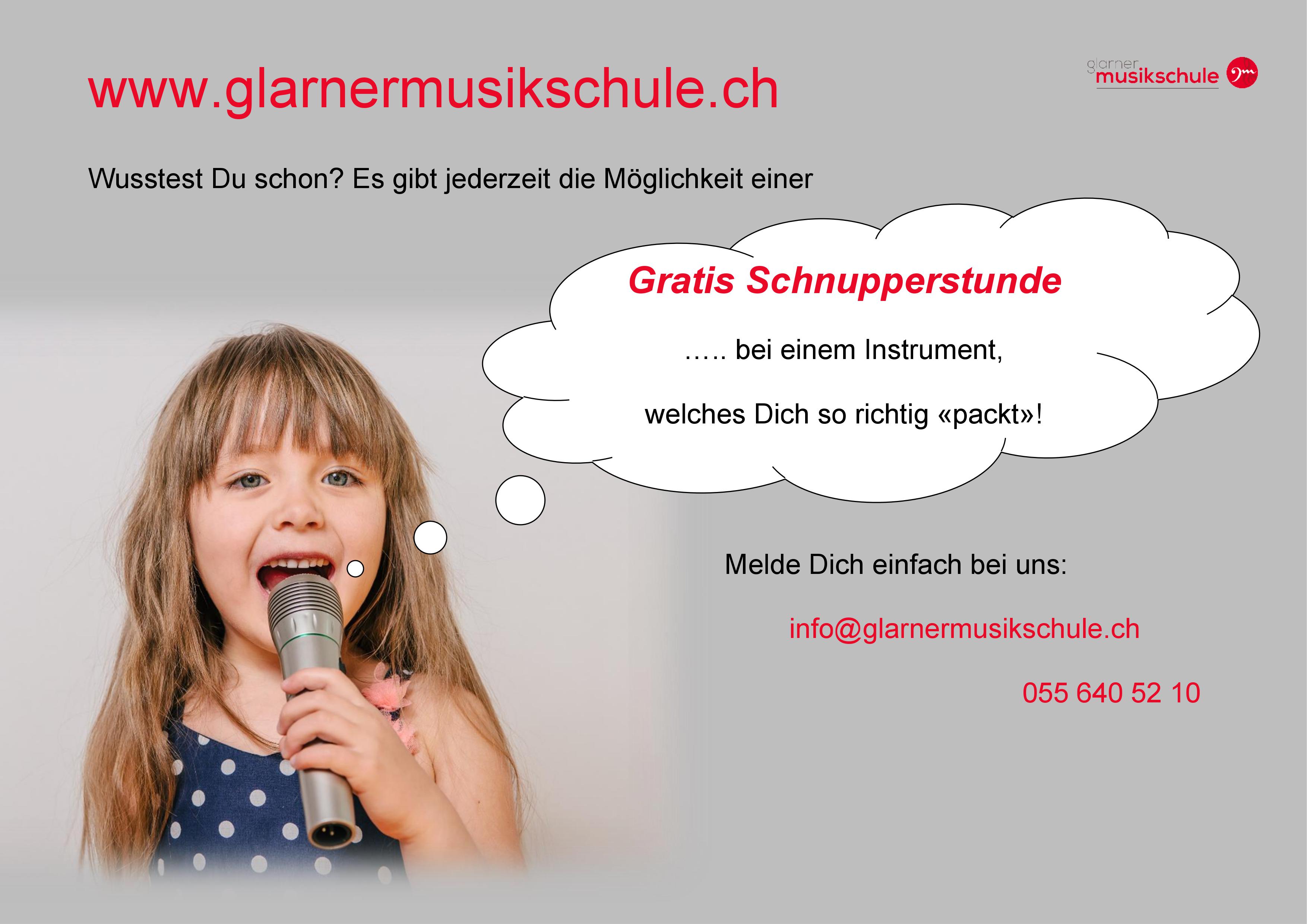 © 2020 Glarner Musikschule, Glarus. Alle Rechte vorbehalten. Entwicklung CoNeT - Design & Logo BroncoKunst. Fotos Shutterstock und ©Michel Krafft